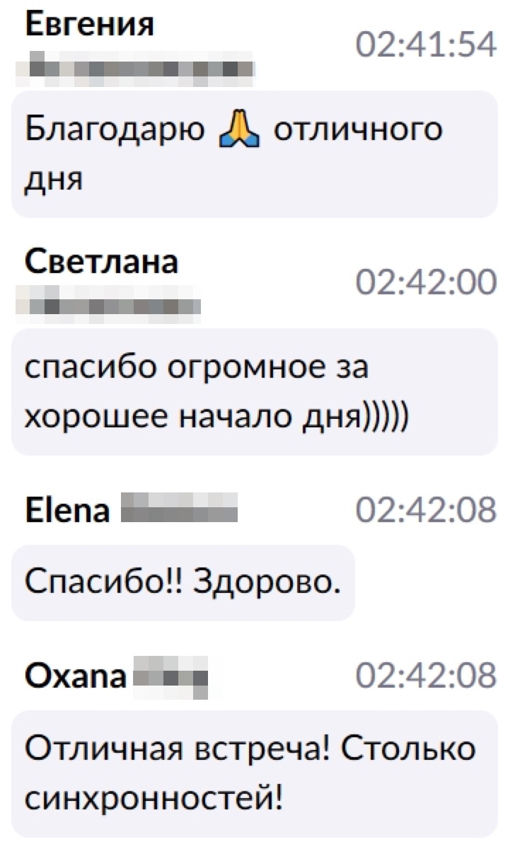 - Быть в потоке и общем поле единомышленников, которые тоже горят идеей выйти на новый уровень успеха