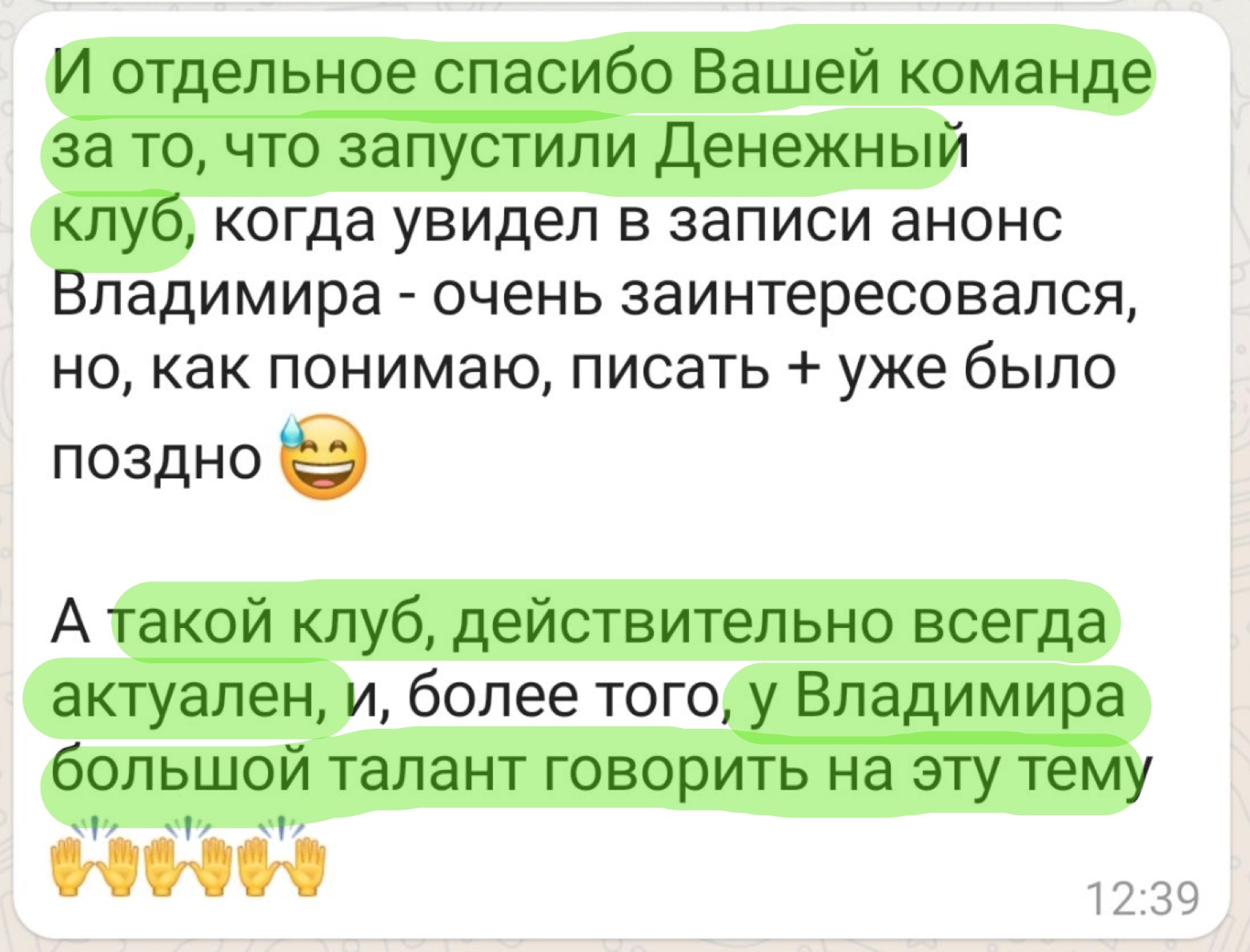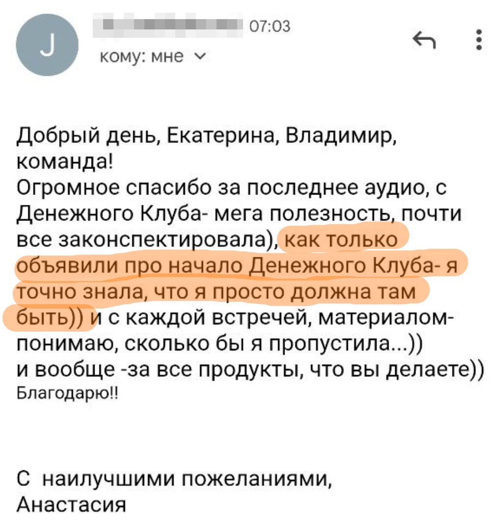 Но главное, в клубе мы сдвигаем фокус с идеи, что «мы зарабатываем»… мы учимся быть в состоянии изобилия во всех его проявлениях.