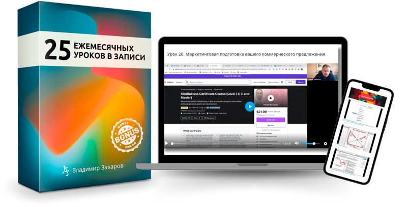 2 Каждый месяц у вас будут уроки бонусного контента по мышлению миллионеров и техникам эффективности. Один урок в месяц.
